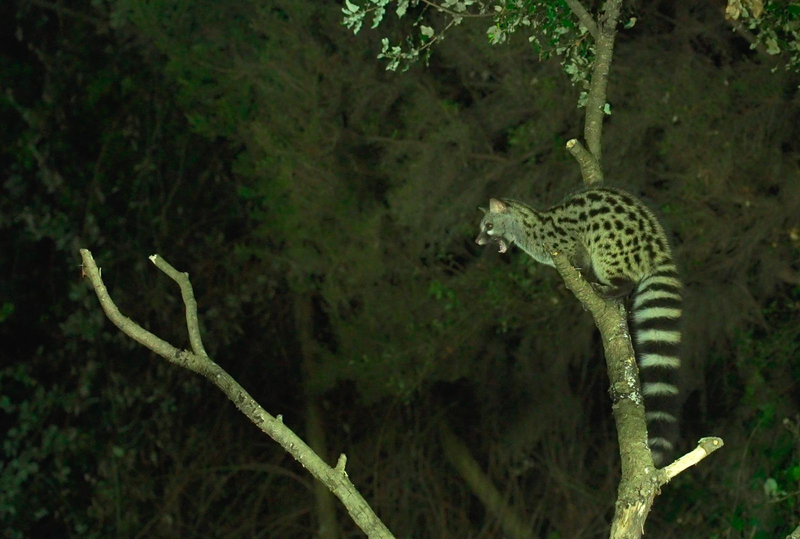 Se trata de un cazador de mediano tamaño, nocturno y arborícola. Pertenece a una familia de depredadores realmente antigua: los vivérridos. Carnívoros primitivos, precursores de los felinos y las hienas.