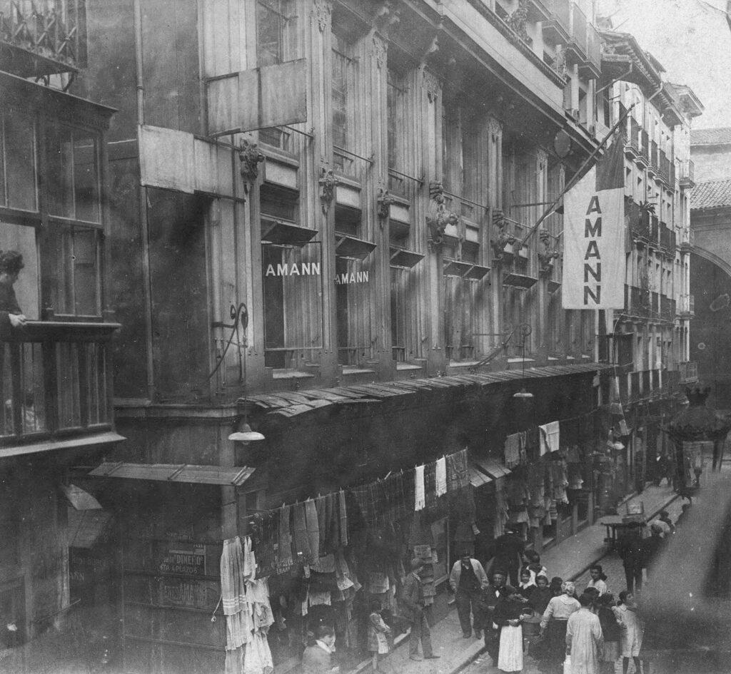 Un edificio que hoy en día pasa inadvertido para los ojos de los bilbaínos, fue durante muchos años acogedor del gran centro comercial de Bilbao. Fue fundado por Emiliano Amann Palme, nacido en Bilbao el 22 de mayo de 1822. Los Almacenes Amann proveyeron a la población de todos los elementos necesarios para el hogar. También eran famosas sus campañas de márketing, y sus escaparates de Belosticalle estaban en boca de todos.